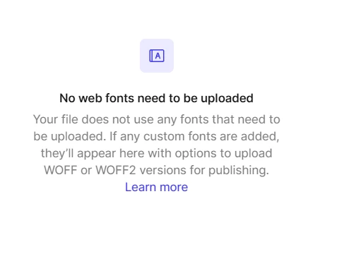 I would like to add the font size Cabinet Grotesk in figma as it is not recognized so this makes it difficult with optimization to 'hug' the texts in the 'phrames'. I would like to add the lettertype and I have a file with all the sizes. When I want to add it to settings, in my AI built website, and choose 'Fonts' in my file I read the following: 'No web fonts needs to be uploaded’, see screenshot below.
