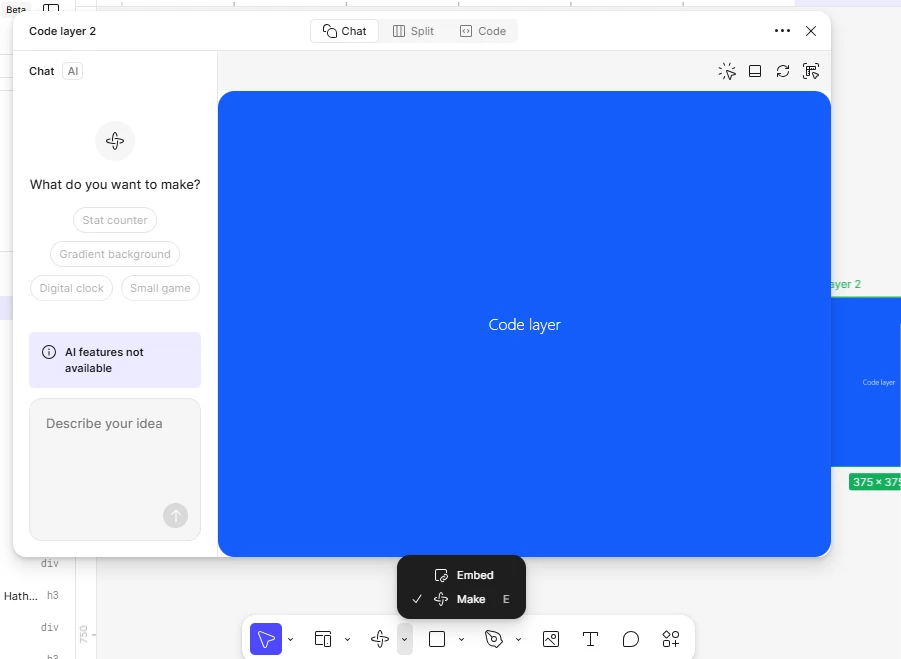 I can use Figma Make and it’s working perfectly. I am using Figma Site and it’s working perfectly. But, I can’t use Make in Site. When I am adding a code layer, or using Make in a frame, it’s saying “AI Features not Available.” I checked it in help center and it’s saying that there is connectivity issue but it’s not getting resolved for a week for me now. Help me resolving the issue. Thanks.