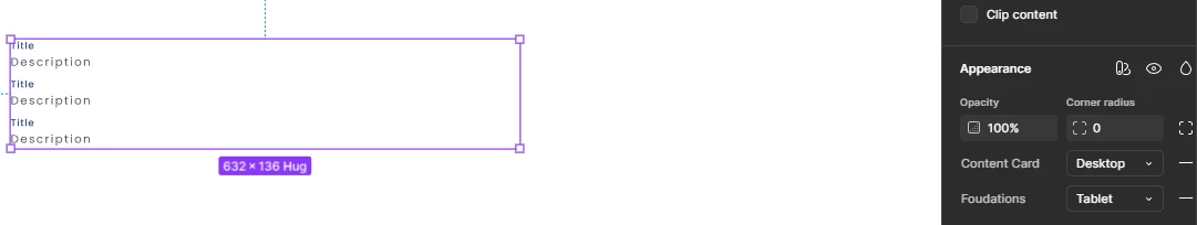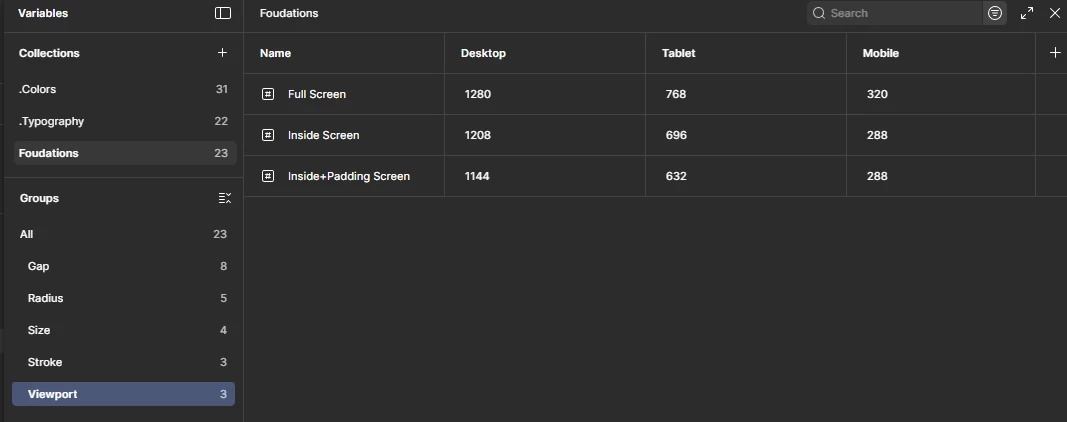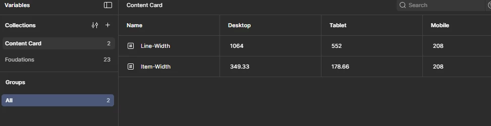 I’m currently structuring a design system in Figma and need to design screens for three different sizes (desktop, tablet, and mobile). To streamline this, I’m setting up variable modes for each screen size.