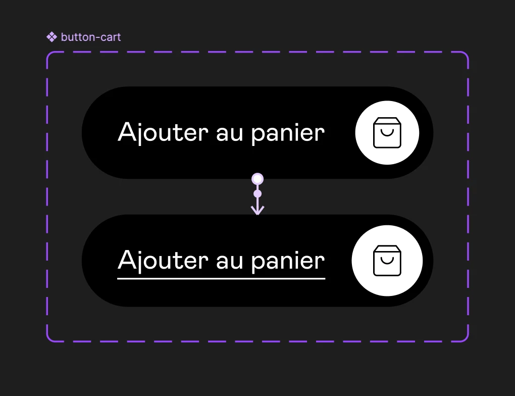 And finally the default button and its hover version, with a rollhover and a “reset component style” state to return to the default state before the animation.
