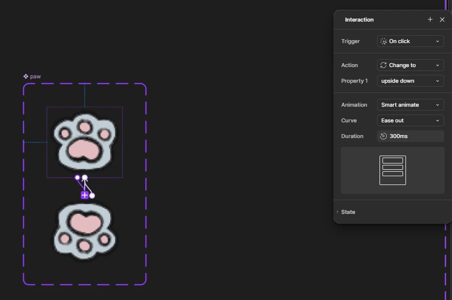 I created two components, and linked them as a variant, with one duplicated from the other and rotated. I set in prototype for both of them, when clicked, to change to the other variation, with smart animate on. I then copied one of the variants and pasted it into my project. It seems to react when clicked on, but nothing happens to it. Any help would be greatly appreciated!