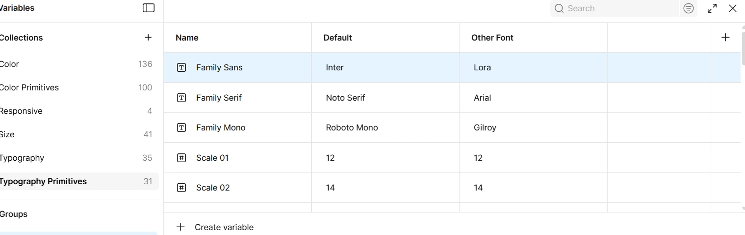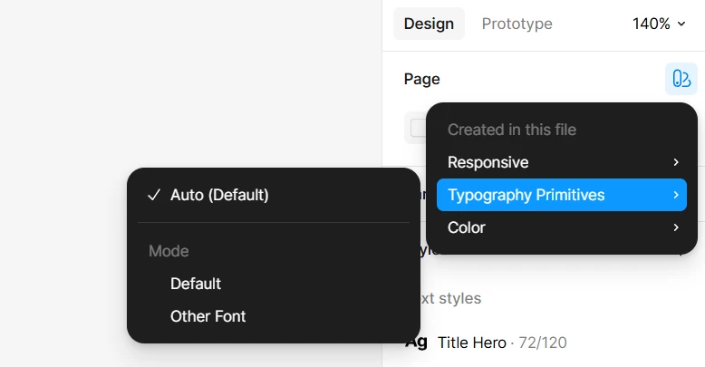 I'm using Figma's Simple Design System (SDS). I added a new Mode to the Typography Primitives collection so I can switch to a different font.