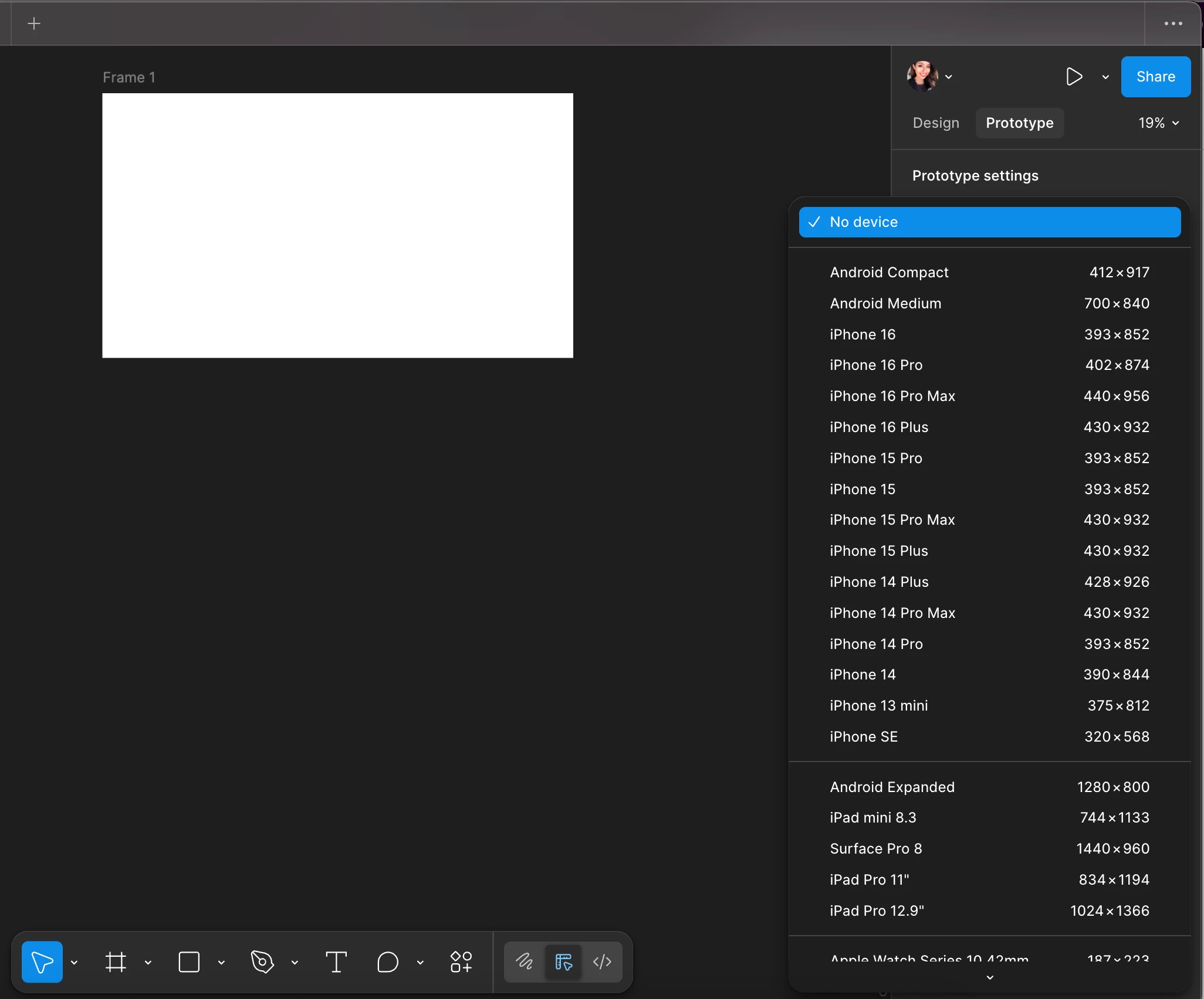 after the latest update of the right menu, where it used to be device selecting to present prototype, I can't change the peresenting device to desktop, even if I'm trying to present 1920*1080 frame.