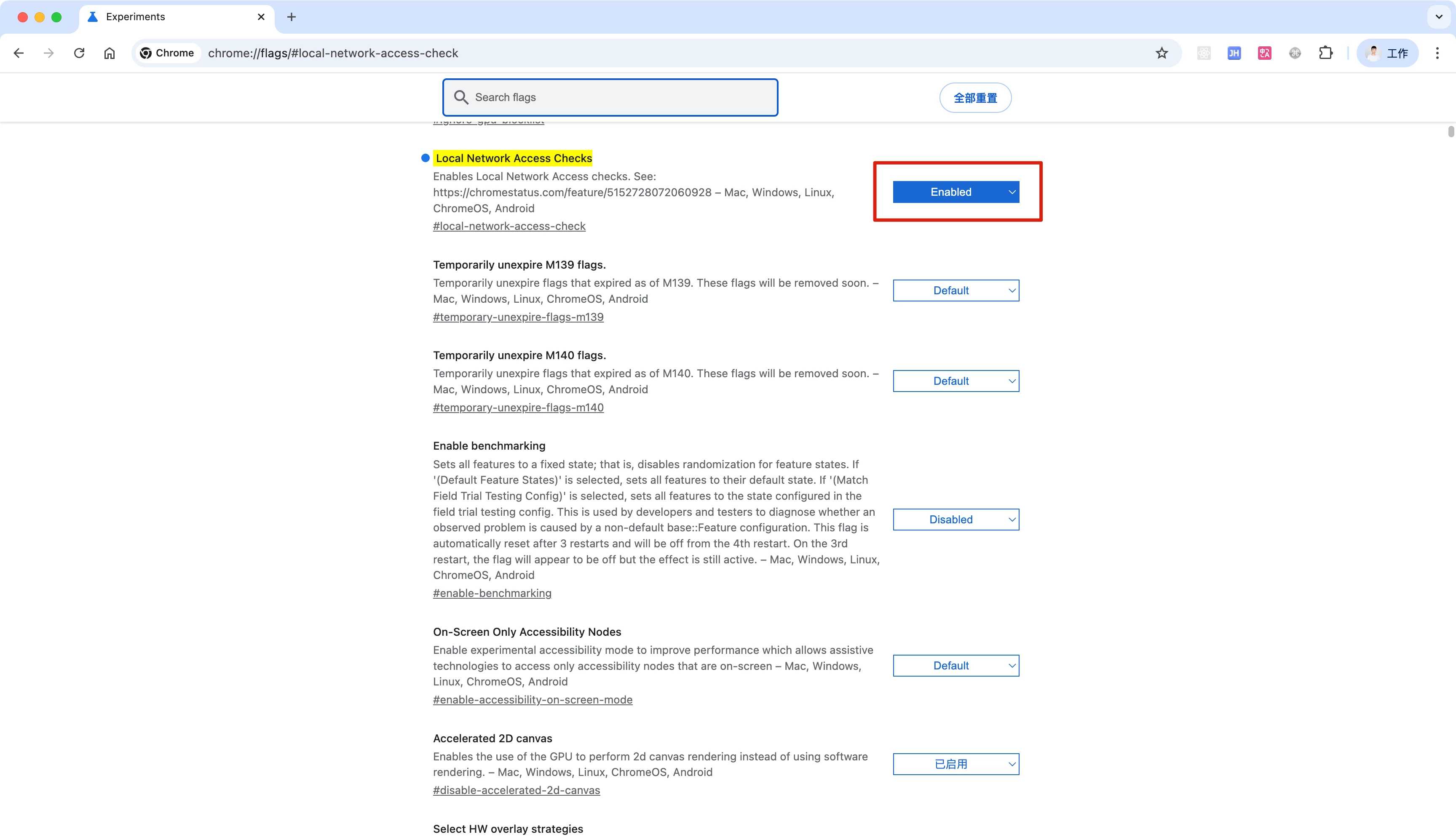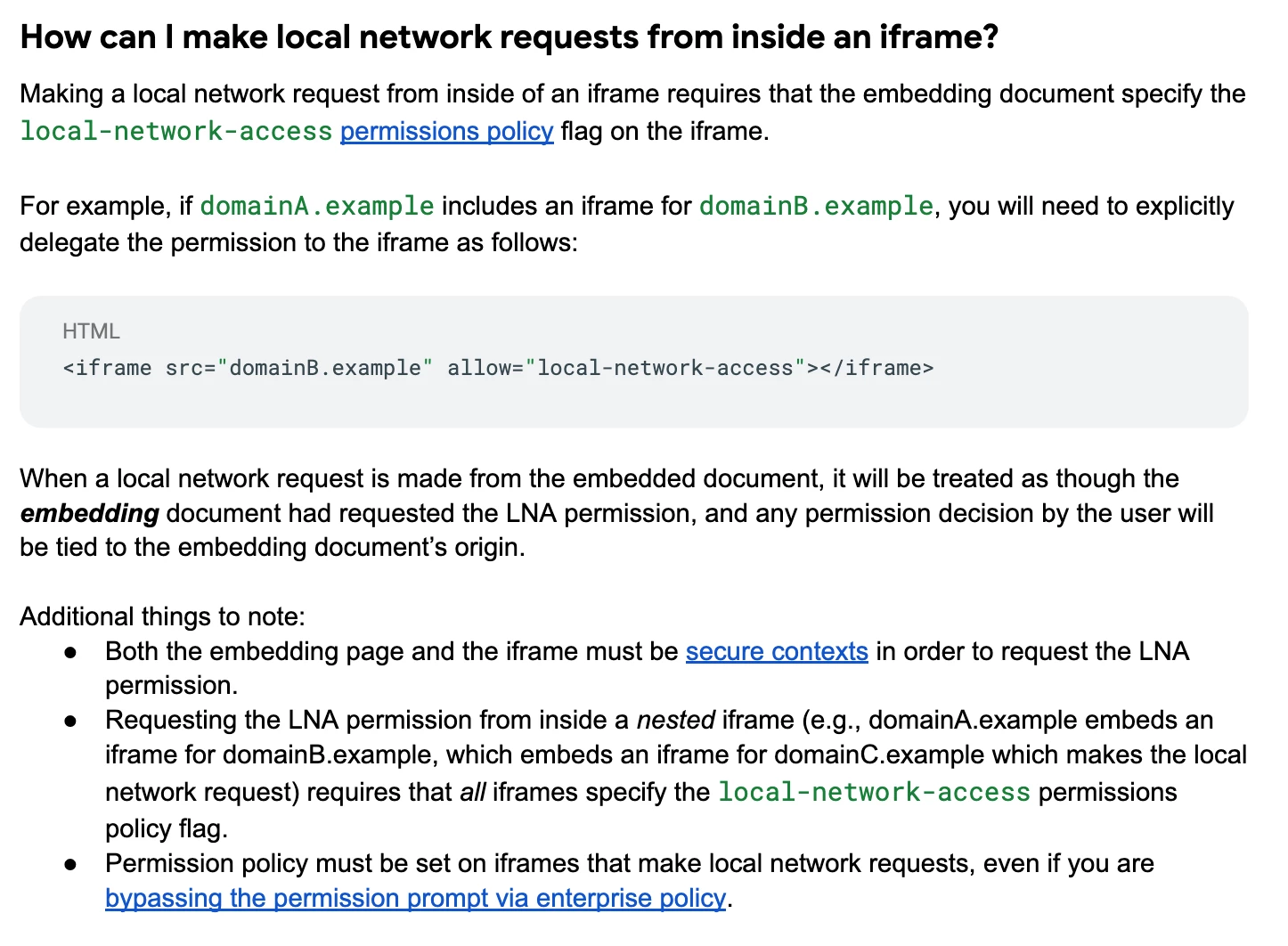 To experience the LNA policy: In Chrome, input chrome://flags/#local-network-access-check and enable the flag.