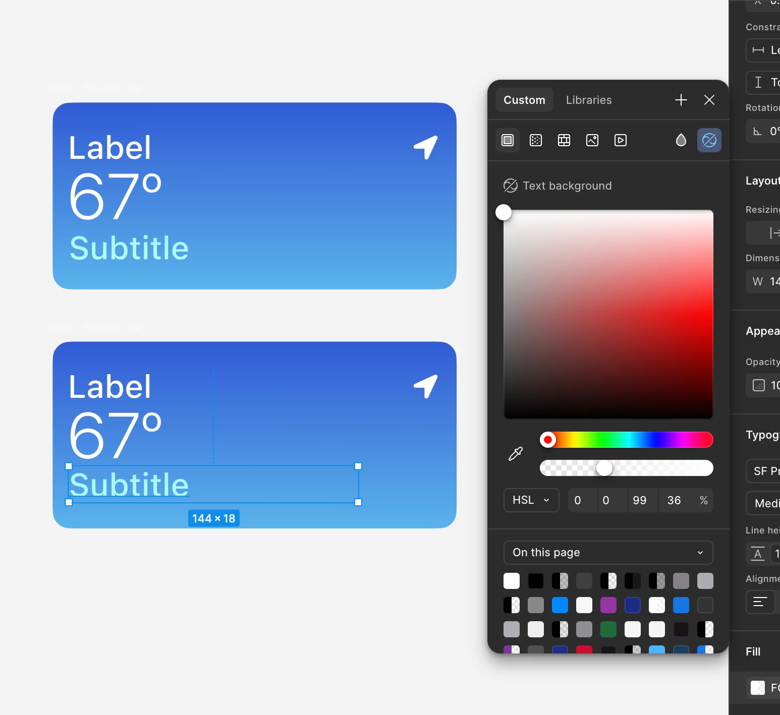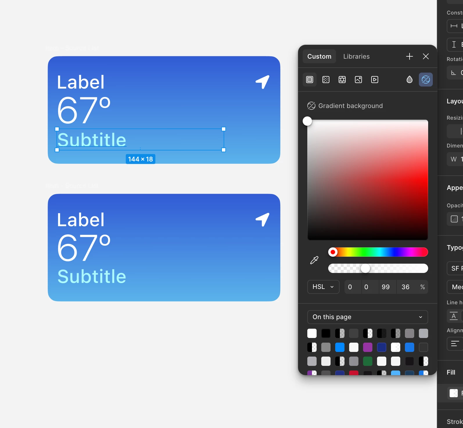 I don’t really understand the difference between text background and gradient background messages in color contrast feature of figma. In which case and why it shows these messages. In attached images the properties of the texts are the same but contrast messages are different and I can’t really understand why.