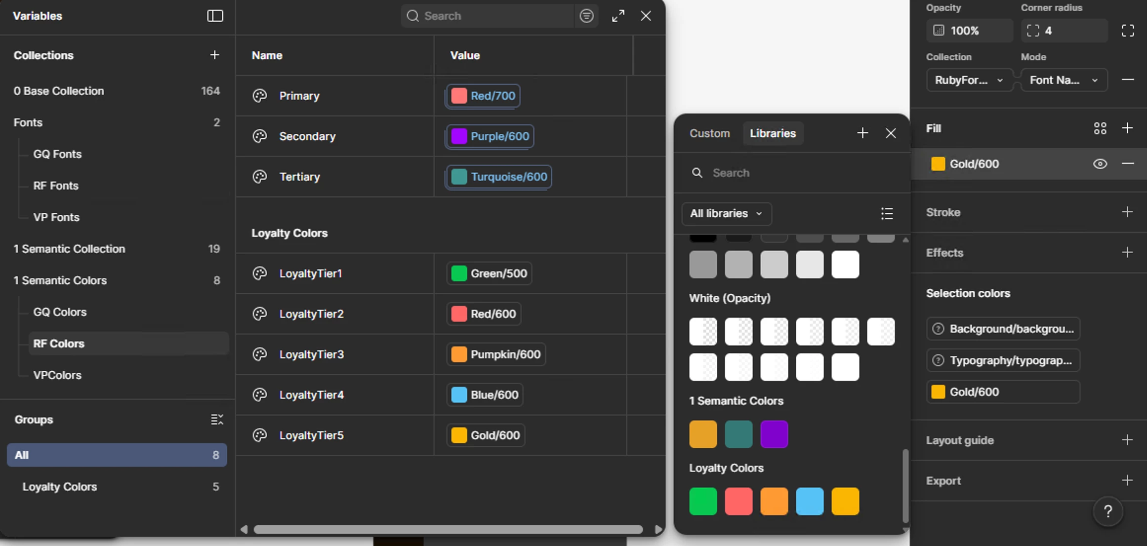 For example- I wanted to add a color from ‘RF Colors’, but the only ones I can see are from the ‘1 Semantic Colors’ section.