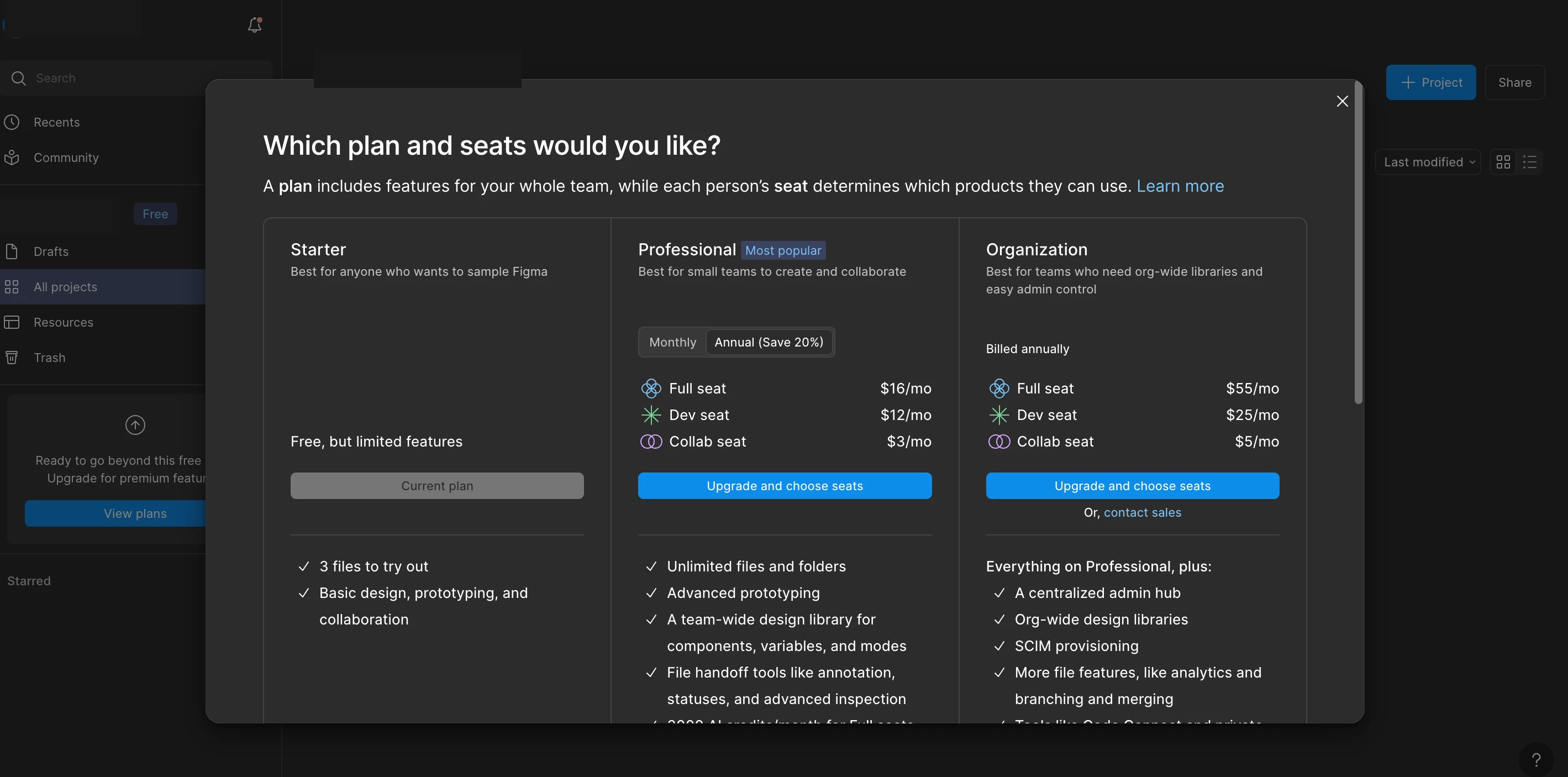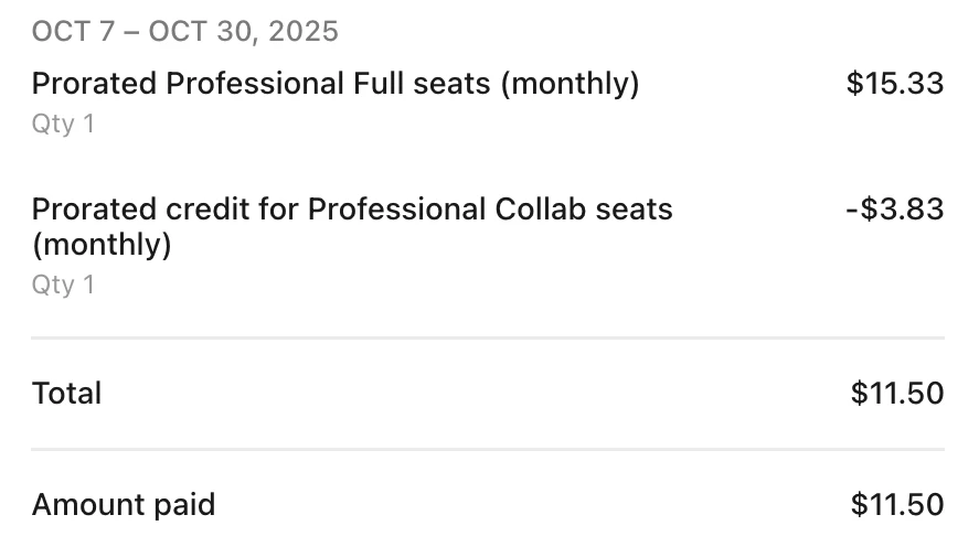 I got charged for the Professional Plan ($11.50) and it doesn’t make sense? The only other thing I did was give viewer access (just draft files) to my other personal accounts on Figma (so there are 3 viewer seats). NO edit access. I checked the settings, and it shows I’m on the free plan, and there’s no cancel button. But I got charged for the Professional plan, and I have no idea what’s going on.