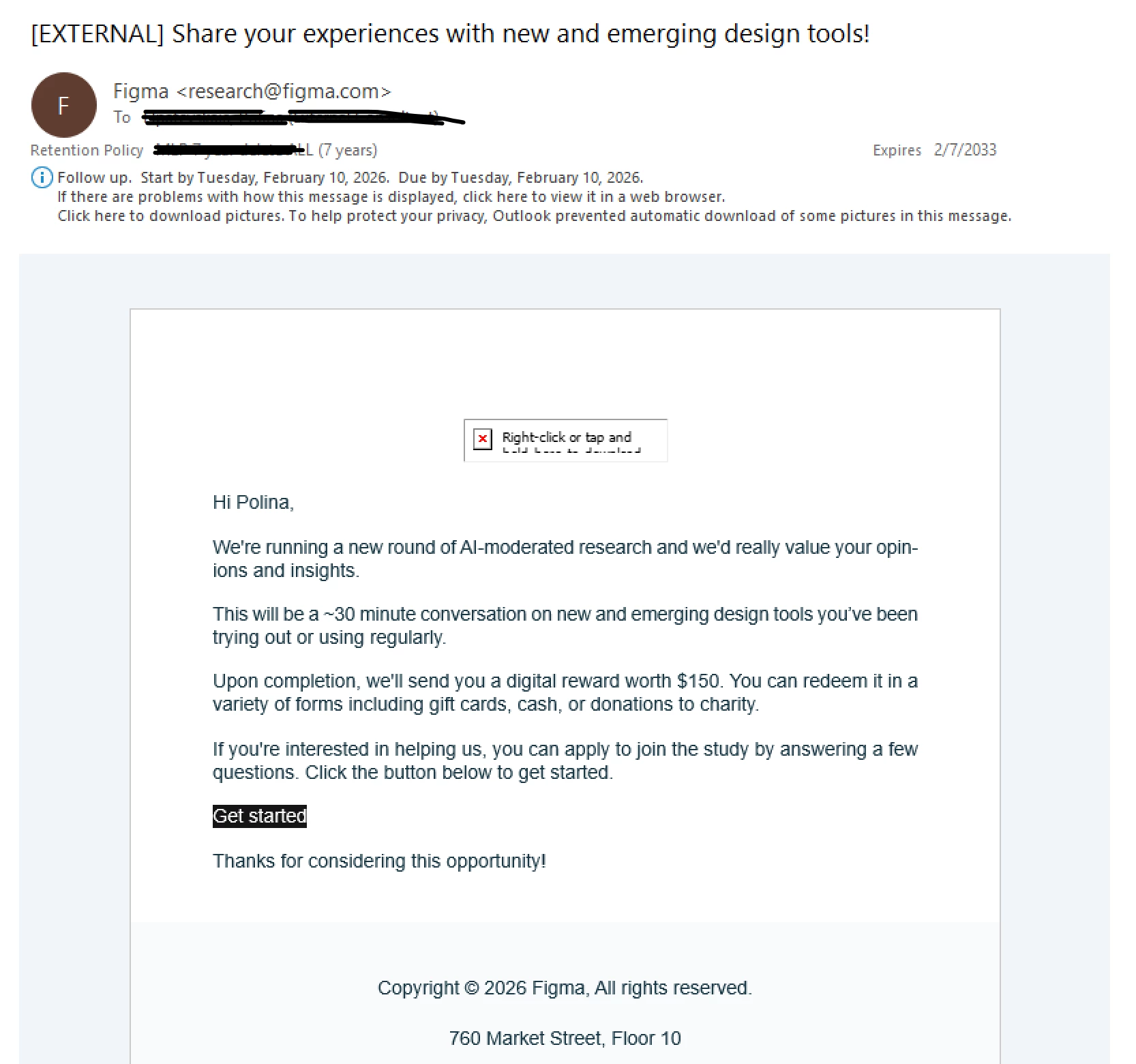 Could someone from the Figma team or community help confirm whether this is an official communication from Figma or a phishing/scam attempt?
