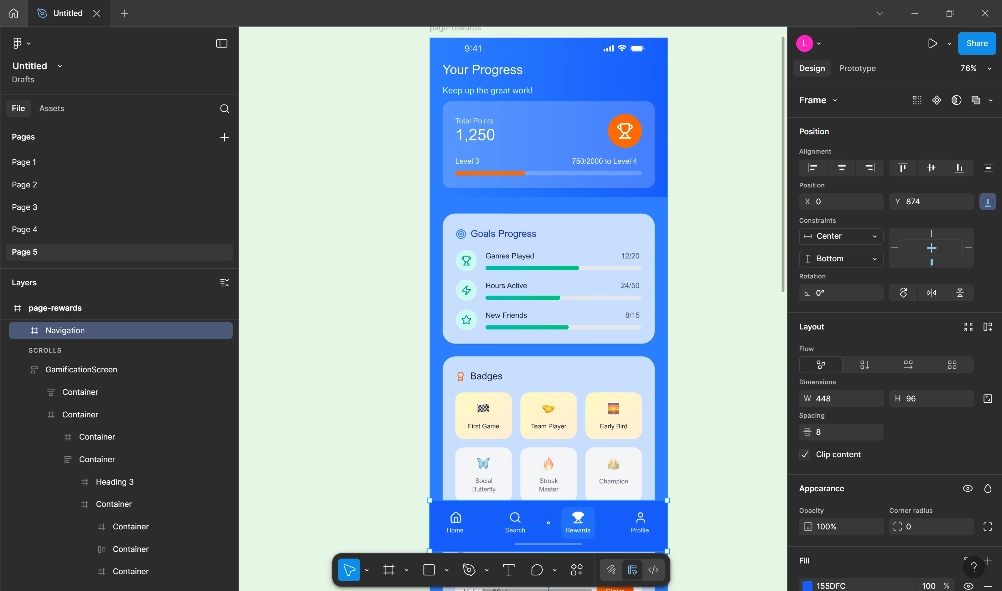 Hi. You need to put Navigation frame to the bottom of the page-rewards frame