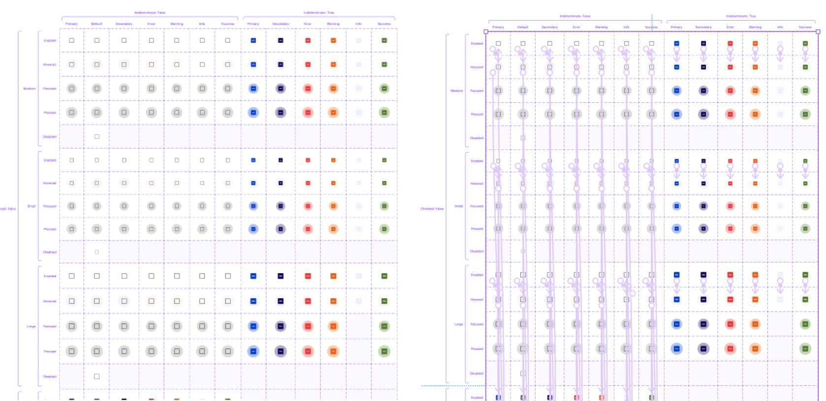 Here are screenshots of the before and after. For some more context we’re working off a MUI kit and we’re getting rid of the abundance of variants that we are not using. All that’s been done between the before and after is deleting variants and changing their wrapping auto layout into a grid and moving the pieces around. Thanks!!