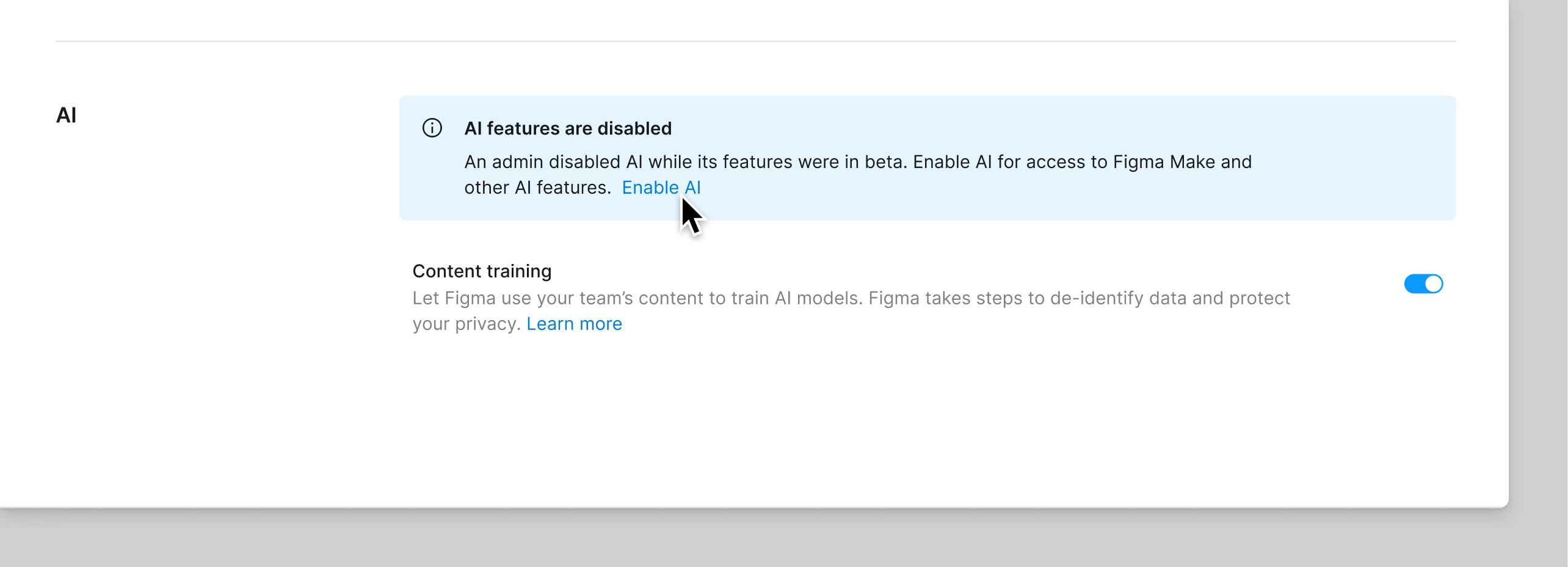 Please note that if you are on a Figma for Education plan: Some features like Figma AI and setting are not available with the Education plan (read more).