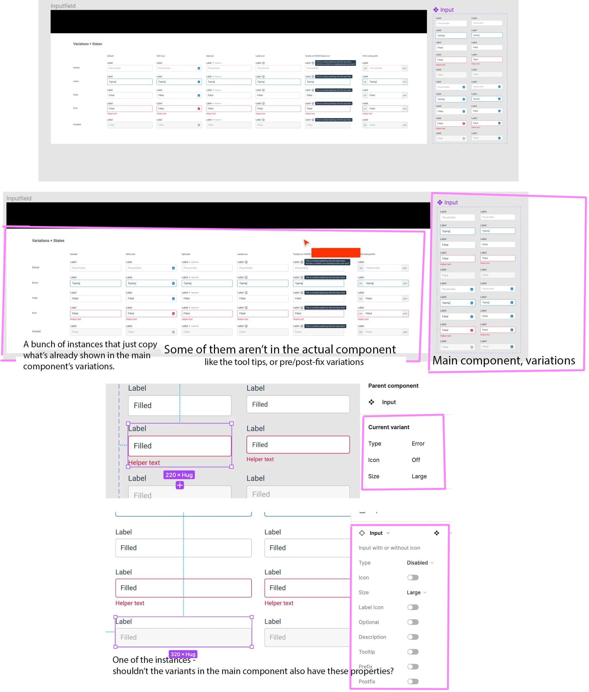 I just started a new position and took over a design system that the previous designer made. However the way things are set up looks a bit weird to me. It’s been a while since I set up a design system, but this isn’t best practice right?