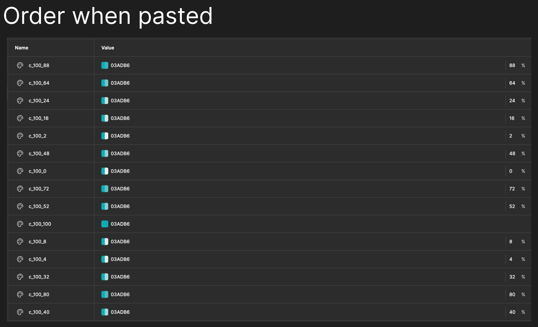I need to copy variables from one file to another. While this generally works well, the order appears to change when pasting them into the new location.