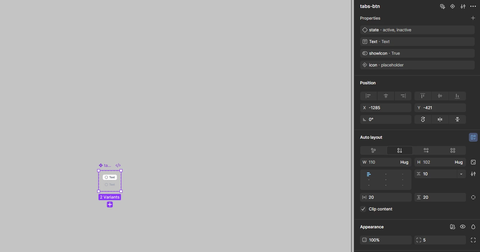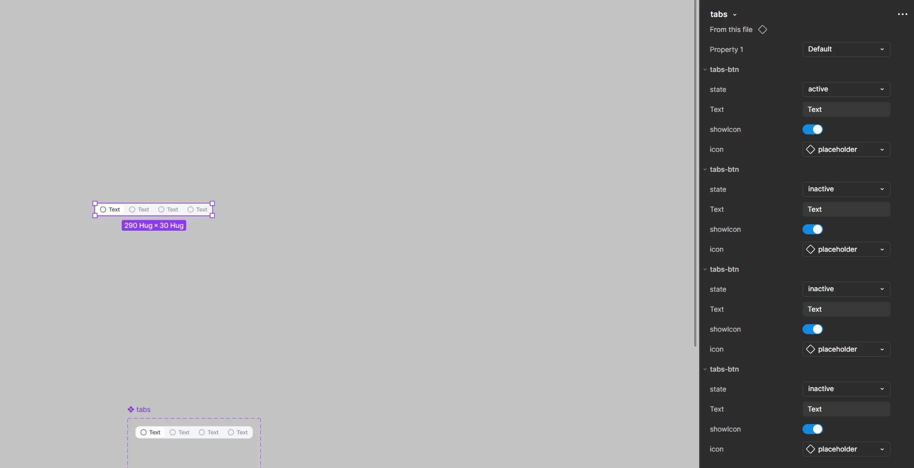 The problem is that Figma doesn’t allow assigning Booleans directly to nested instances — so I can’t just create a Boolean property inside tabs-btn