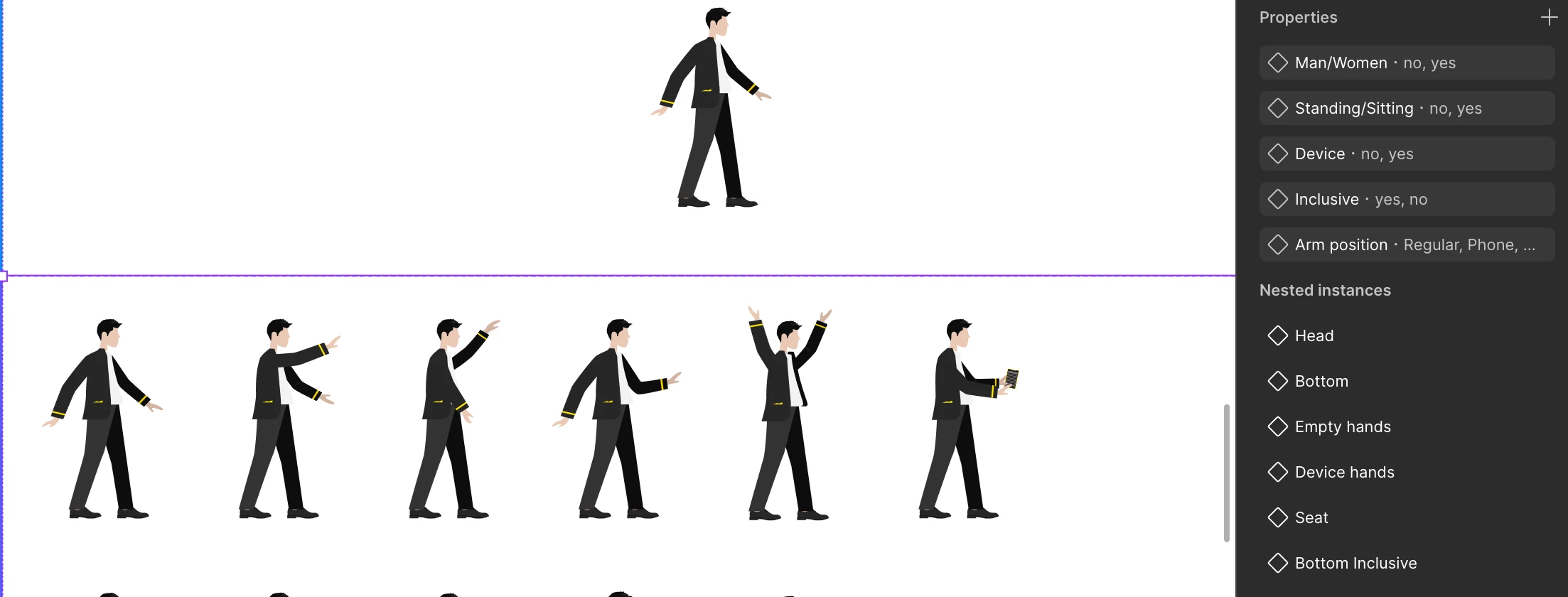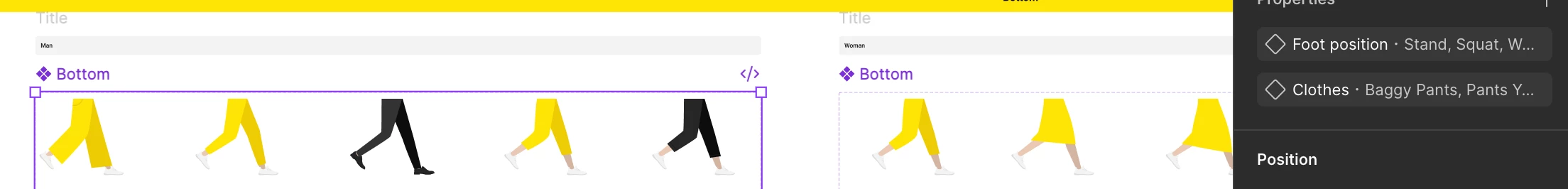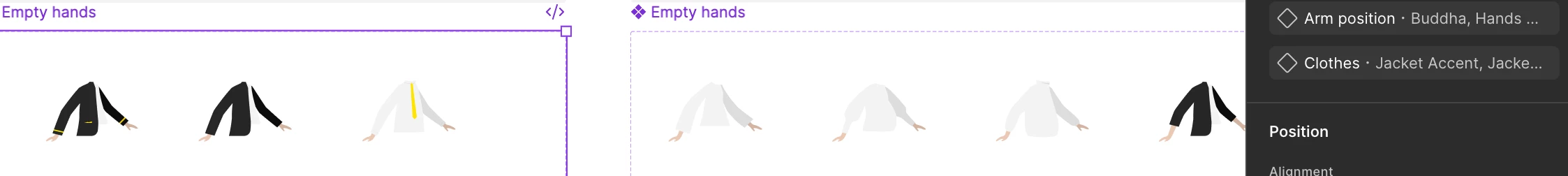 Is there a way to "link" these separate clothing components so Figma understands that Pose: Holding L in Workers is the same as Pose: Holding L in Science? Or do I have to merge all 100+ variants (all styles and all poses) into one giant component set to make this work?