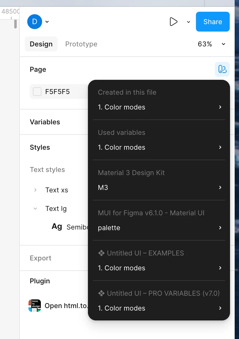 I’m using Untitled UI to create some of my screens. I dragged and dropped components from its 2 main files (variables and examples). The problem is that now, I have components that “inherit” values from 2 different palettes.