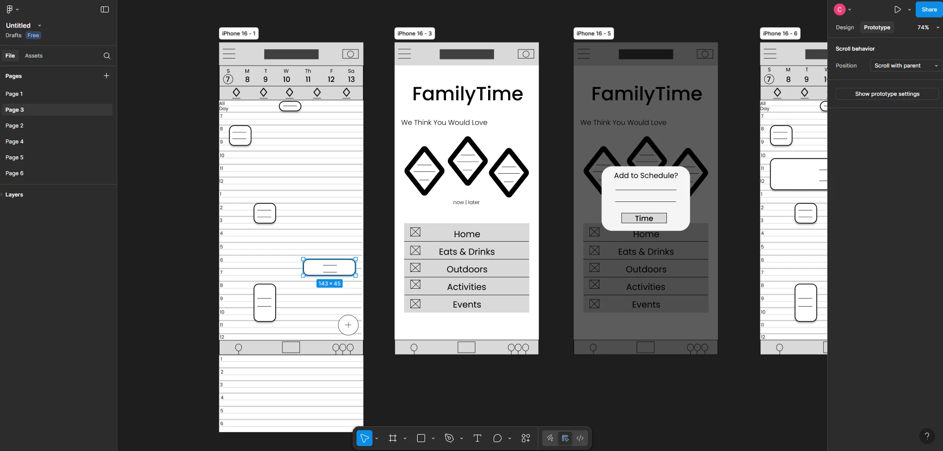 Hello, noobie here, currently taking my first UI/UX course and have been enjoying the process using Figma so far. I haven’t had any troubles until recently, when I started prototyping. As you can see from my pic, I have some low-fi wireframes I made with basic shapes and text that I’m trying to prototype for a basic user flow. But some reason, when I click or hover over anything, except for the tiny diamonds that were imported with the iconify plugin for some reason, the nodes allowing me to connect to other frames does not appear. So I’m stuck and could really use some help. Thanks.