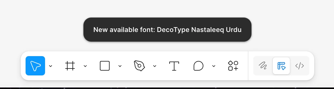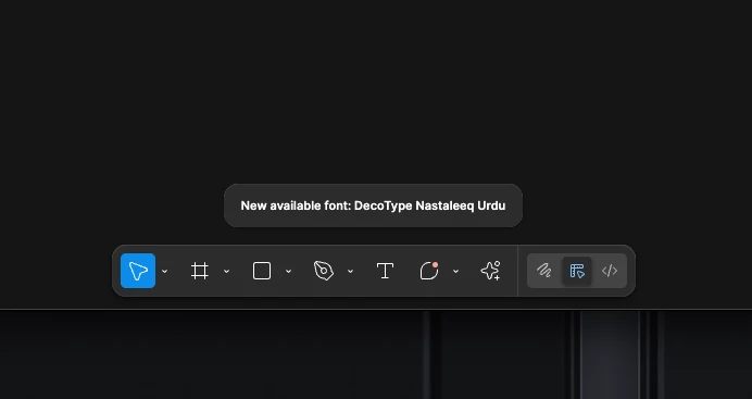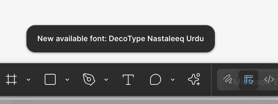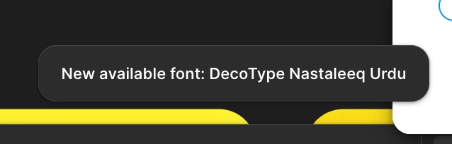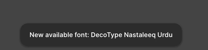 Had this same problem with the “New available font: DecoType Nastaleeq Urdu” notification, it just started happening today, as far as I can tell, after having updated my macBook to macOS Sequoia 15.5 last night. I always work from the web app, and I hadn’t even opened my desktop app in many months, but pulling up the desktop app and choosing “Reset Figma and Restart” somehow still solved the issue within the web app. Thanks for the helpful screenshot,