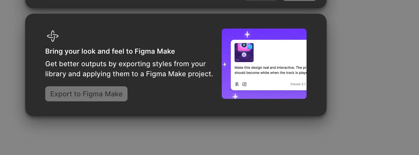 as title, I’m trying to use my published library in a Figma Make project, but the export for Figma Make dialog does not pop up. Also when I click Import From Figma in Make, it does nothing. Tried closing the app and reopen but still the same. I’m on a pro education plan. Is this feature available for me? thank you