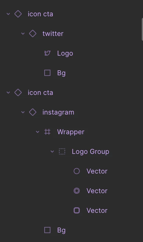 The function is doing a pretty good job recognizing icons but I ran into some issues with nested components. For example in the screenshot below, the isAsset() function returns true for two layers within the Instagram component, but only one within the facebook component. There were also a few times that running the function on the same component returns different results.