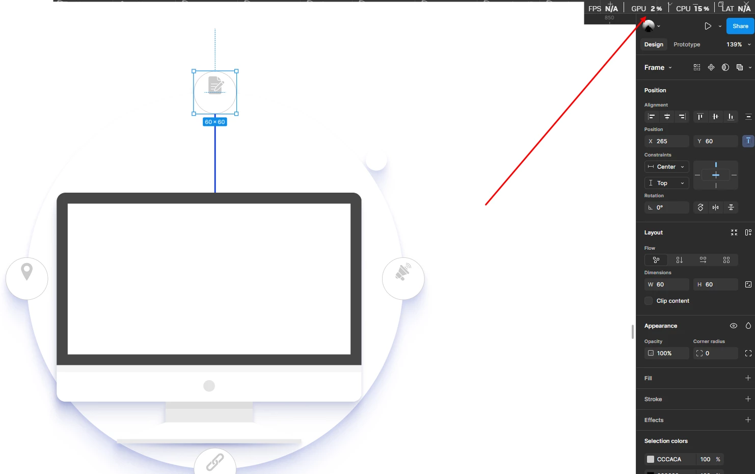 When I press the Alt + R shortcut key in Figma, instead of adjusting or showing the anchor point, my PC displays FPS and other performance details. It seems like the shortcut is triggering a system-level command instead of a Figma function.