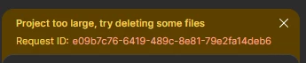 large files break figma make but i have deleted some of those files and it still stock on same message