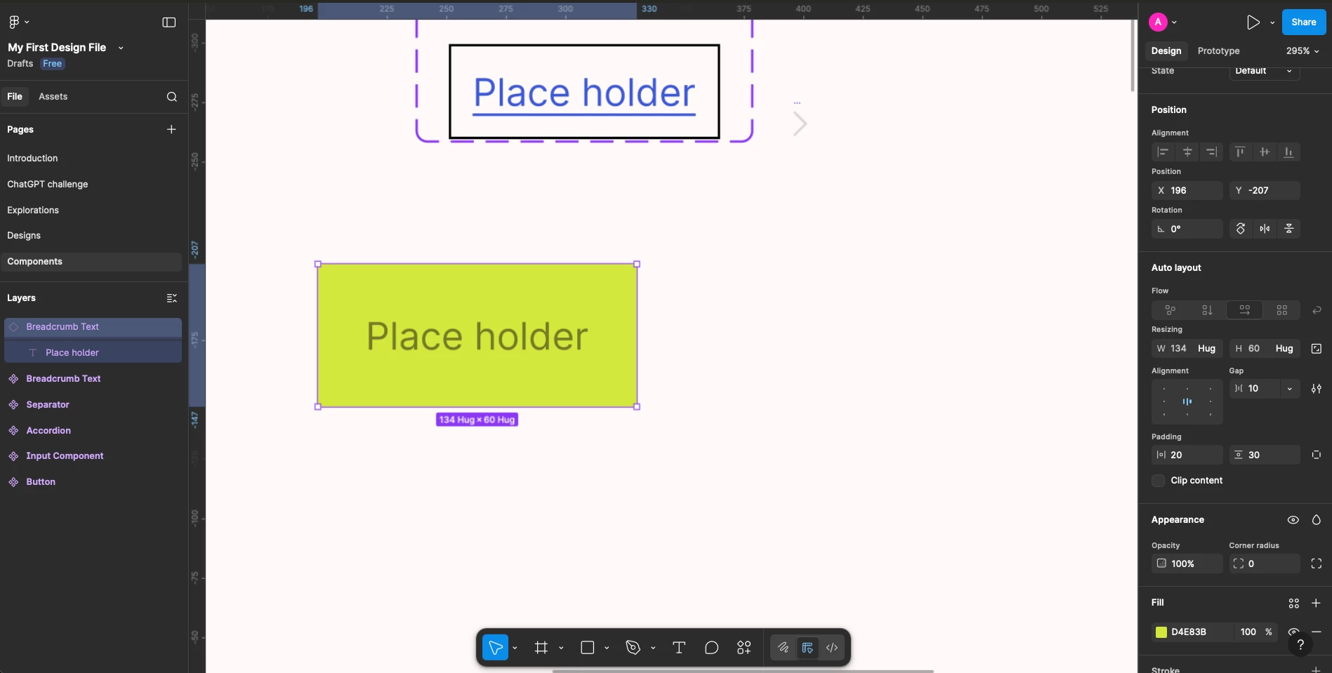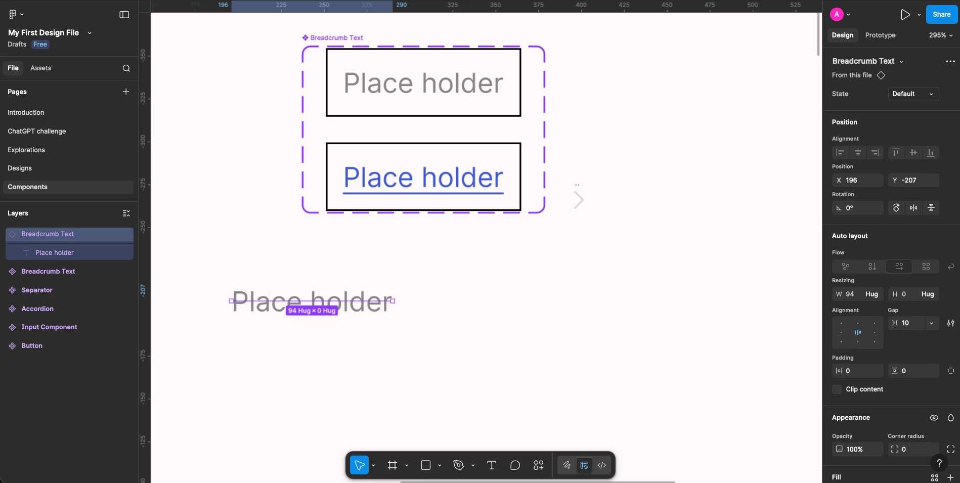 - Created a text field and wrapped it in autolayout, added a stroke.