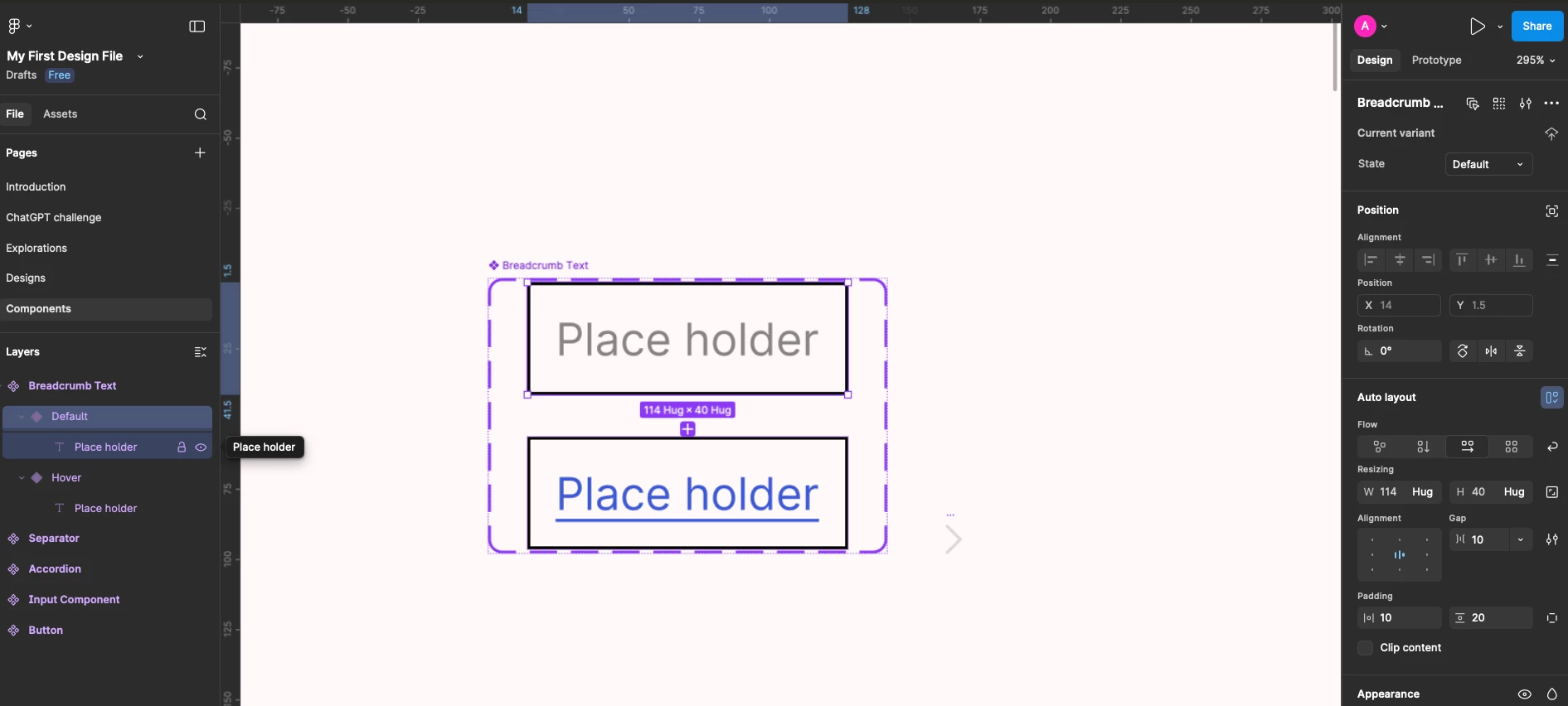 - Added another variant , named them Default and Hover.