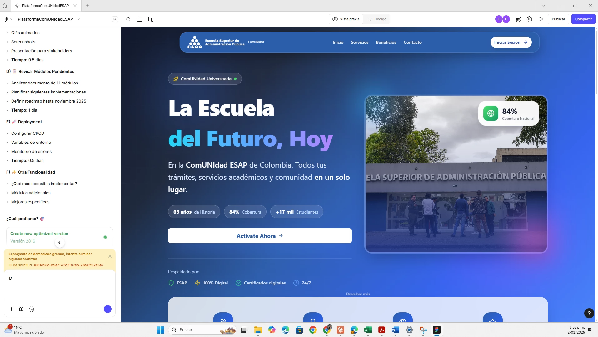 Algo que estoy mirando en figma make , es que me dice que el archivo es demasiado grande y no me deja seguir , trate de eliminar , pero llegue al unto que no puedo hacer nada más . Algo se puede hacer ? trabajar local ?