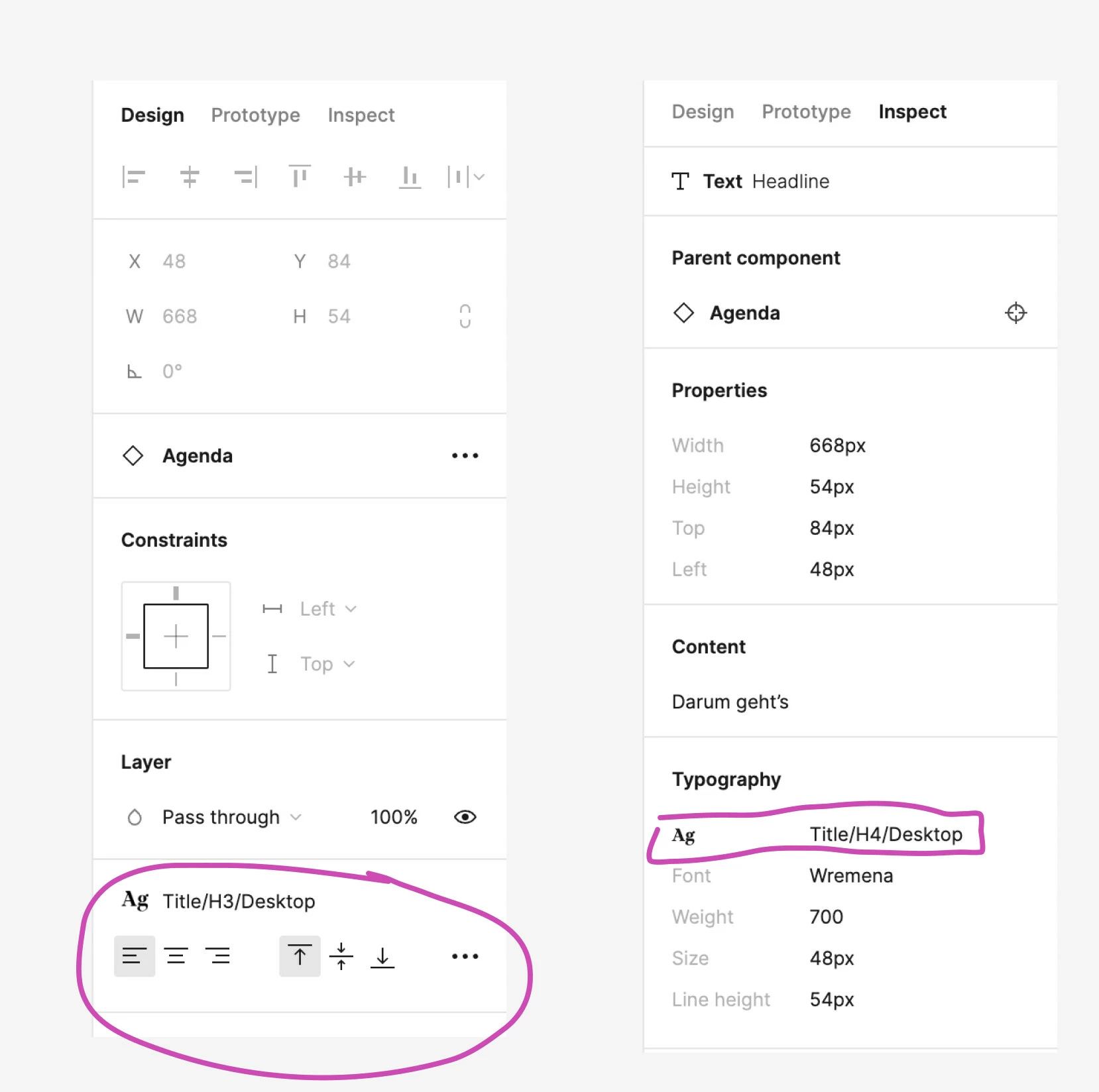 The styles were not updated correctly. The design panel shows the correct style, the inspect panel shows the previous style. The sizes etc. are correct, but the name is shown incorrectly.