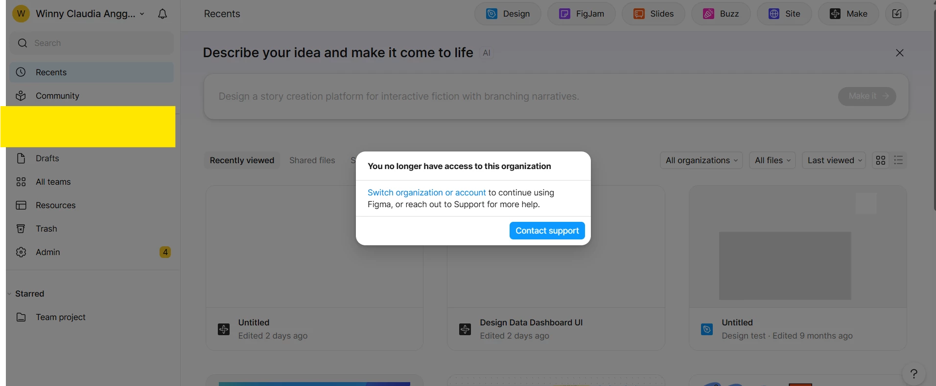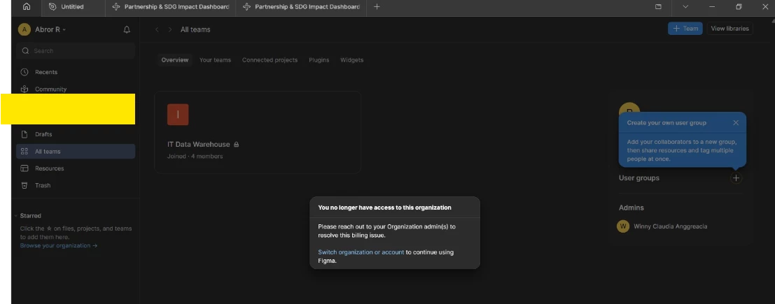 Hi Im Claudia. I cant access my account. It says that You no longer have access to this organization. My cc is deducted but still me and my team unable to access it. My id is an admin. I already submitted the ticket but still no follow up until today. Please kindly help. Thank you