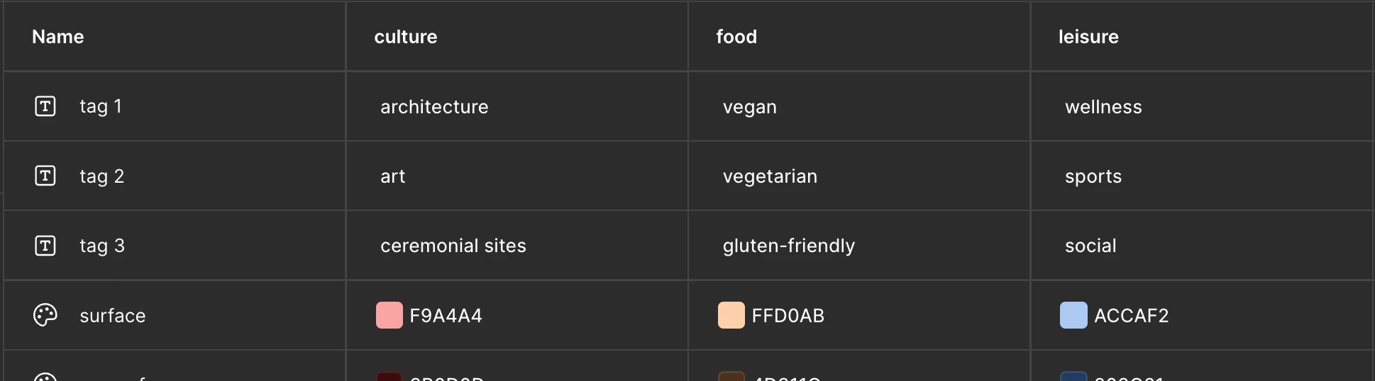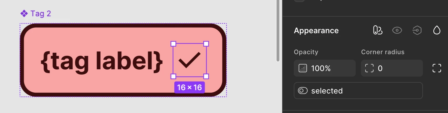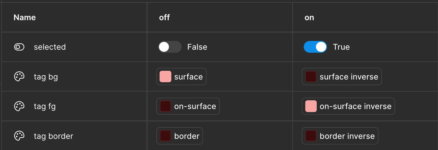 I’m trying to make tags with different sections. Essentially, I need to find a way to have the tag style change based on what tag section its in and if its been selected.