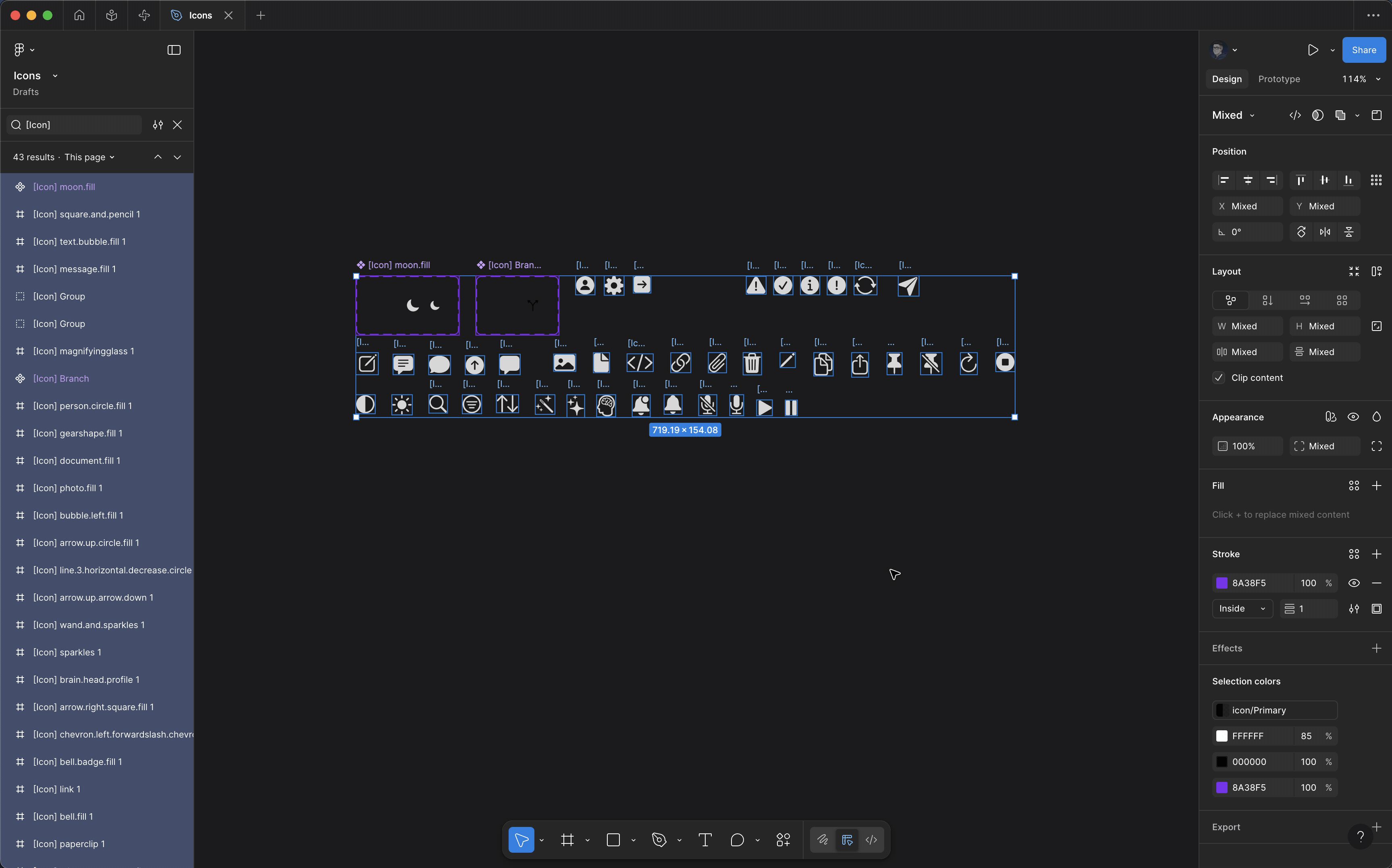 - I found all icons with ctrl f and writing the name of the icon so it found all icons but it still didn’t show their properties. some of them don’t have the same height and width