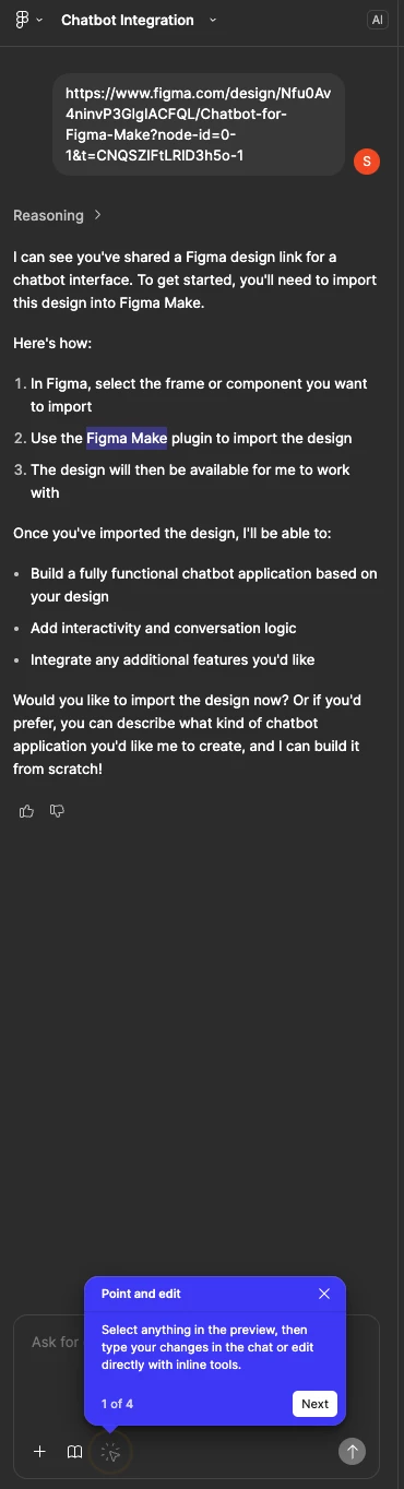 When I paste the file link into Figma make, I then get prompted back to doing singular frames at a time