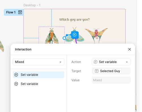 Hi, I’m working on prototyping my project and got a couple “mouse enter” and “mouse leave” interactions connected to variables. These are working properly but when I go to add animations, I am not seeing where I can add/change those. I tried adding a delay of 200ms to see if it would pop up then but still no luck. Not sure if animations are in a different place with the update? Or if animations don’t work with variables?