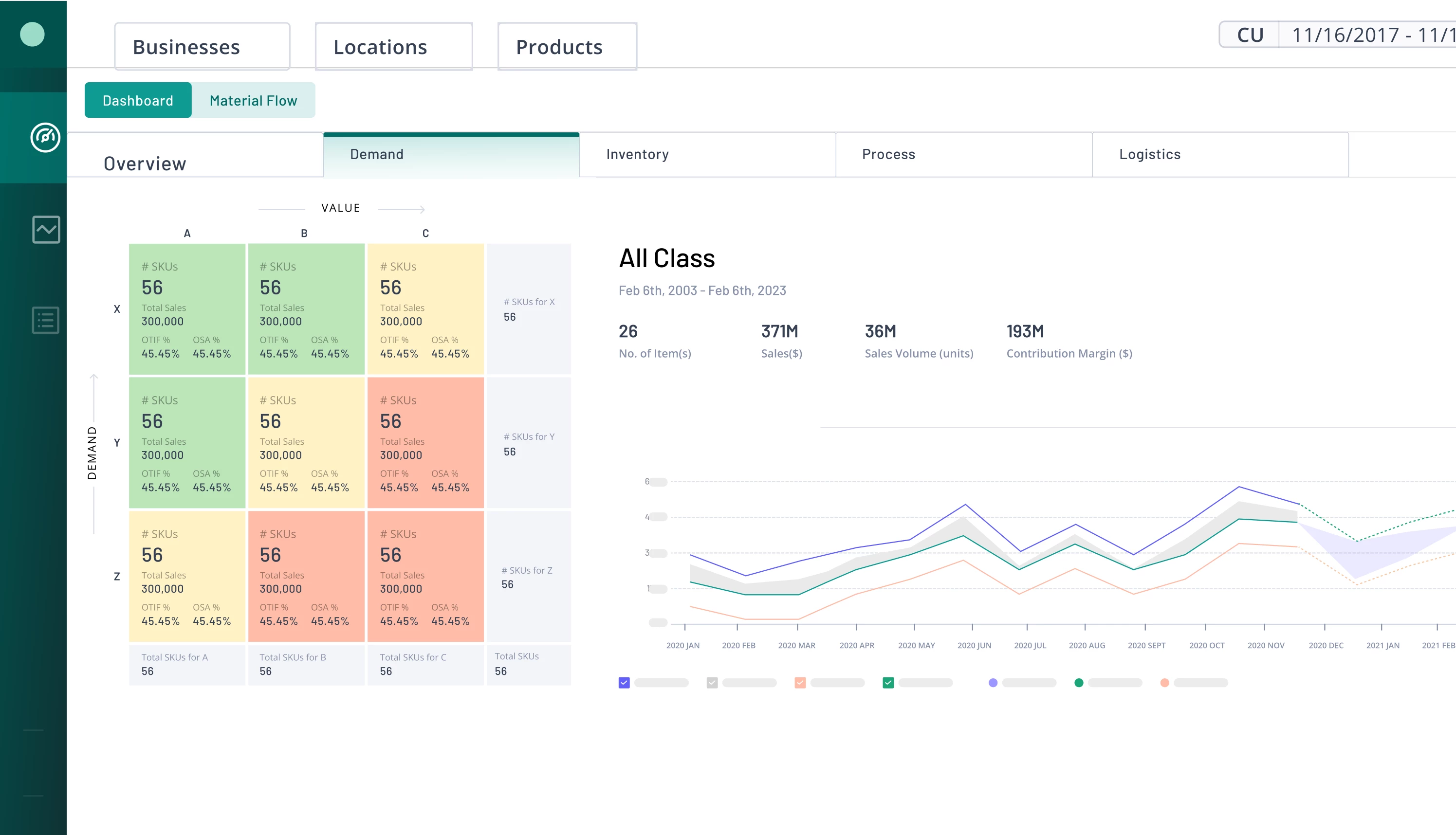 Utilizing the ABC-XYZ matrix for demand sensing, users develop optimization roadmaps for manufacturing, logistics, and finance, targeting the transition of products from red and yellow zones to greener ones.”