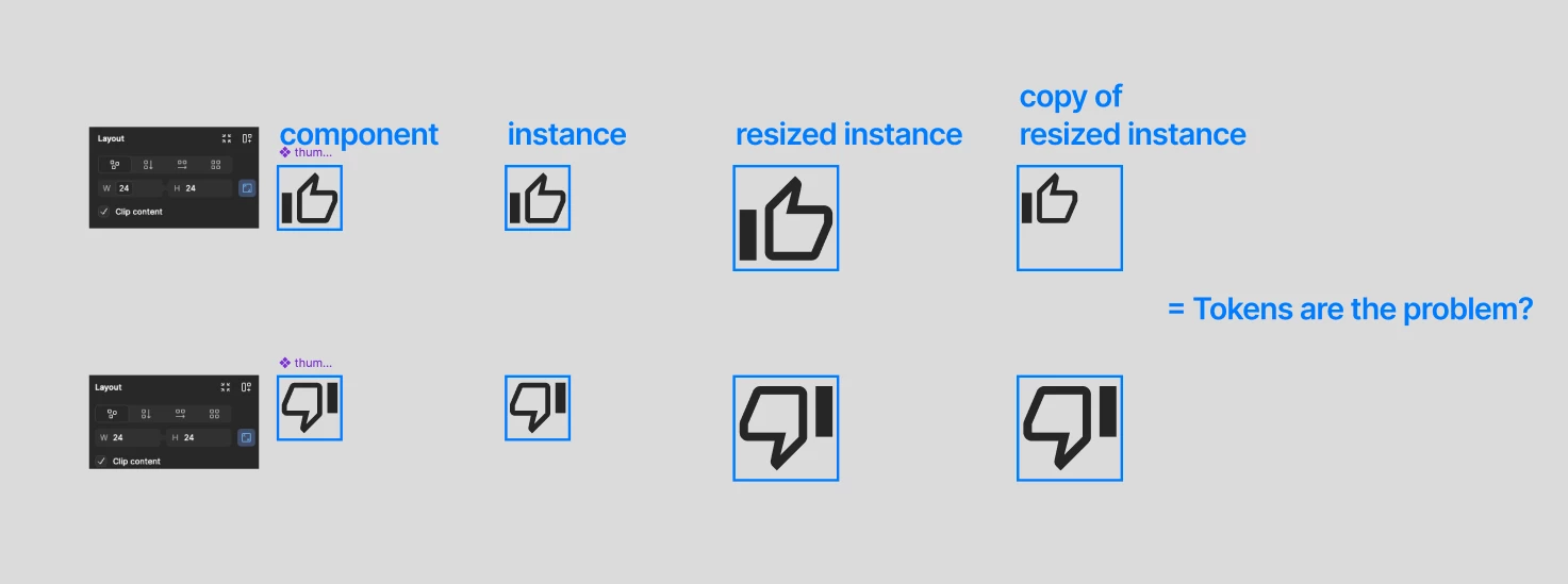 For instance this image component, nested in a product card, should be as is in the version on the bottom, after reloading the component from the ds library the image is bigger. Or the stamp in the footer is correctly inserted in the beige space in DS itself but as an instance it seems to enlarge quite a bit.