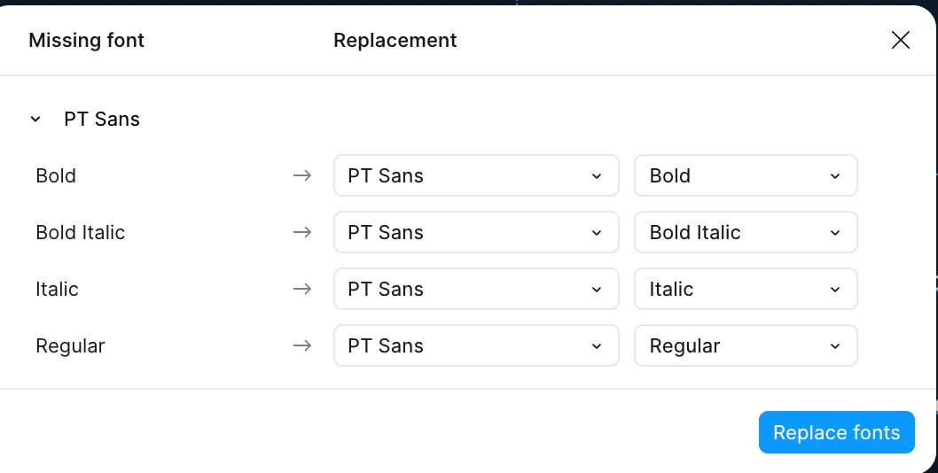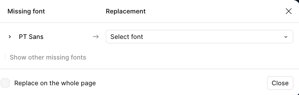 I even tried "replace whole page." No difference. I can’t edit any of my existing text boxes without the pop up warning, which basically ignores my PT Sans selection?
