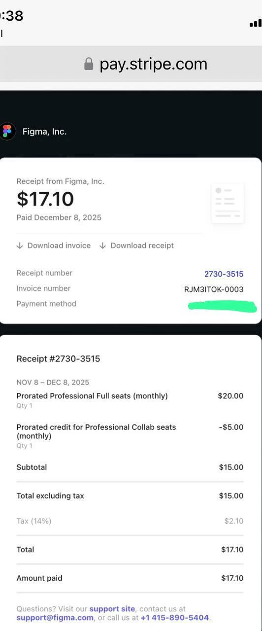 figma has took from 17 usd today, and when i open my account it tells me that my "education account has expired, please upgrade" even though i just got paid 17 usd, the attachment shows even more to the issue