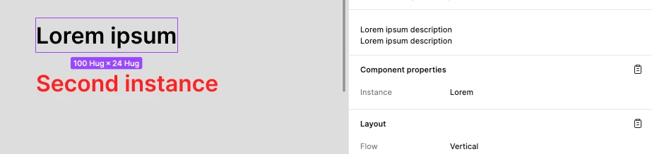 When selecting a component variant it shows the variant description duplicated, but the component set description is missing completely.