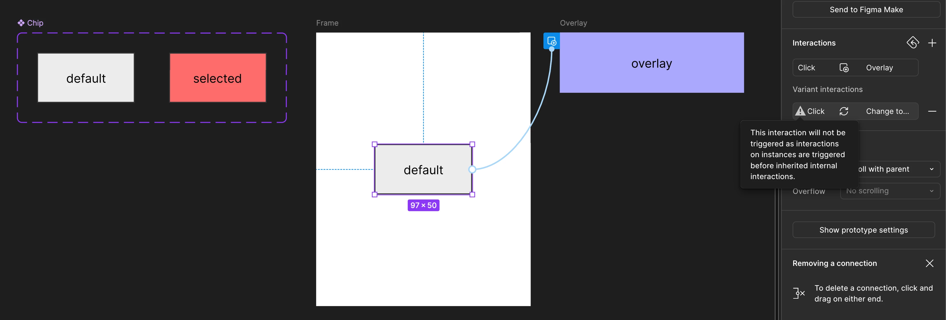 So the inherited internal click interaction is still firing even though Figma says it will not.