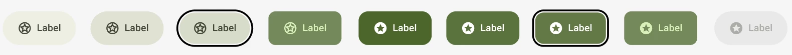 Style: Filled, Tonal, Outline, Elevated, Error, Information, Accent.