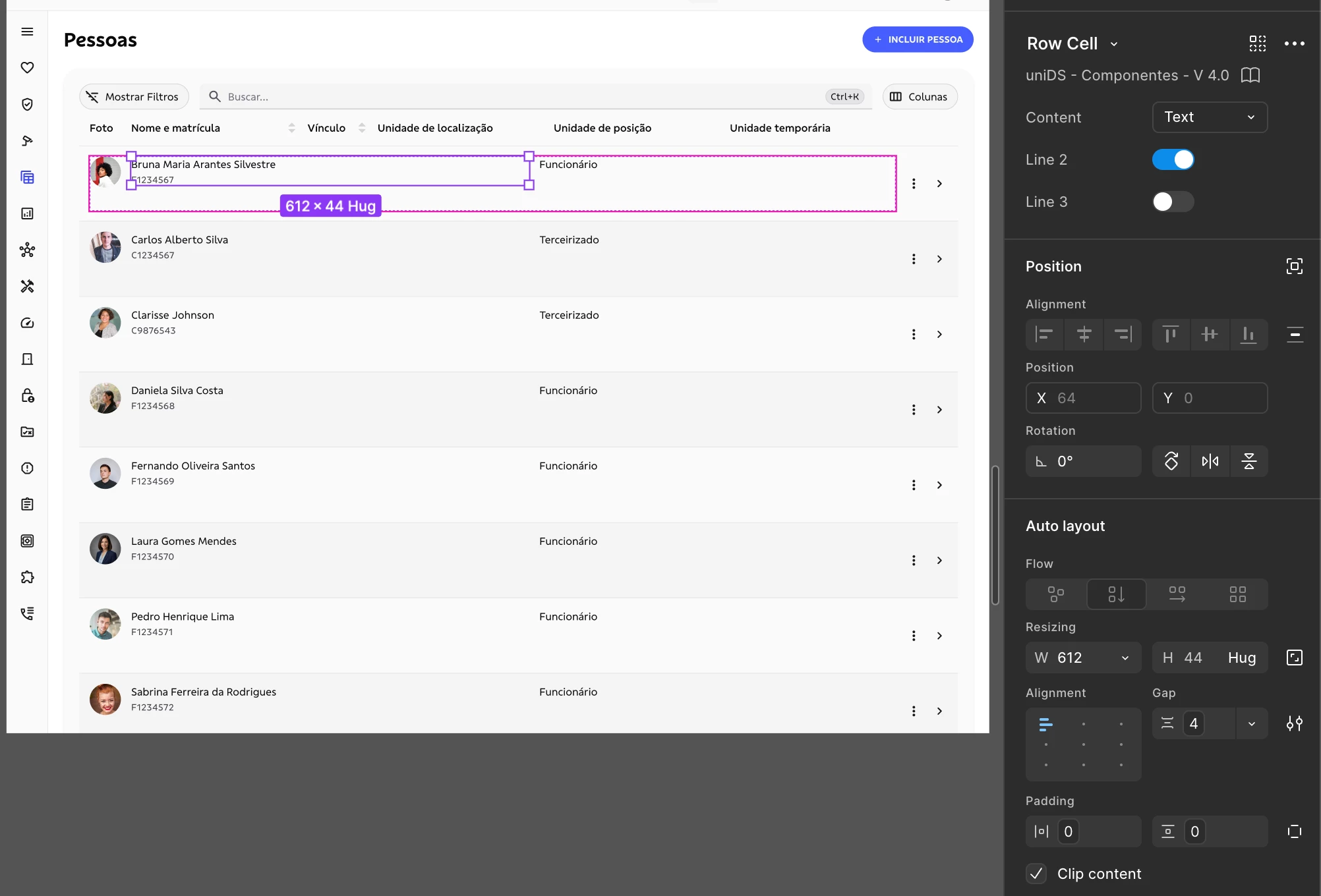 It’s been a few days since the table row component I had created started having issues. Both in the canvas—when it renders, it sometimes changes the fixed sizes I had set to other random fixed sizes—and sometimes, when you double-click down to the slot layer, it automatically fixes itself.
