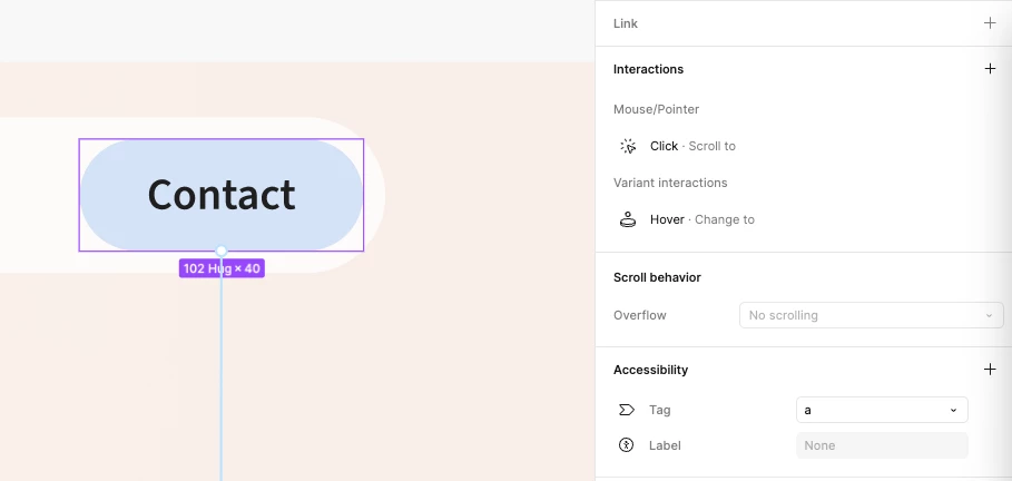 I have a button with typical states (default, hover, clicked, etc.) that I want to function as an anchor link to some information lower on the page. However, it seems that it is associating the ‘Scroll To’ functionality with the state instead of the overall component.