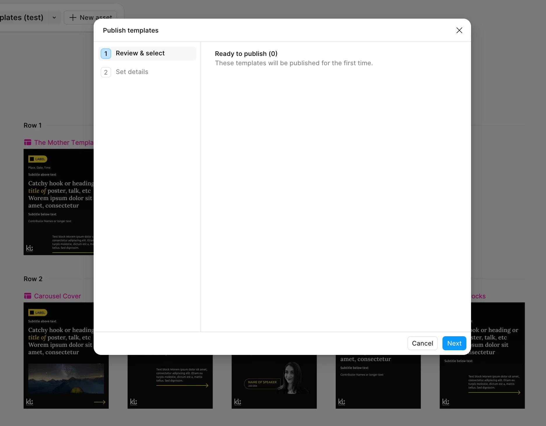 I’m trying to publish a set of templates in Buzz, but they don’t show up under “ready to publish” (see screenshot).
