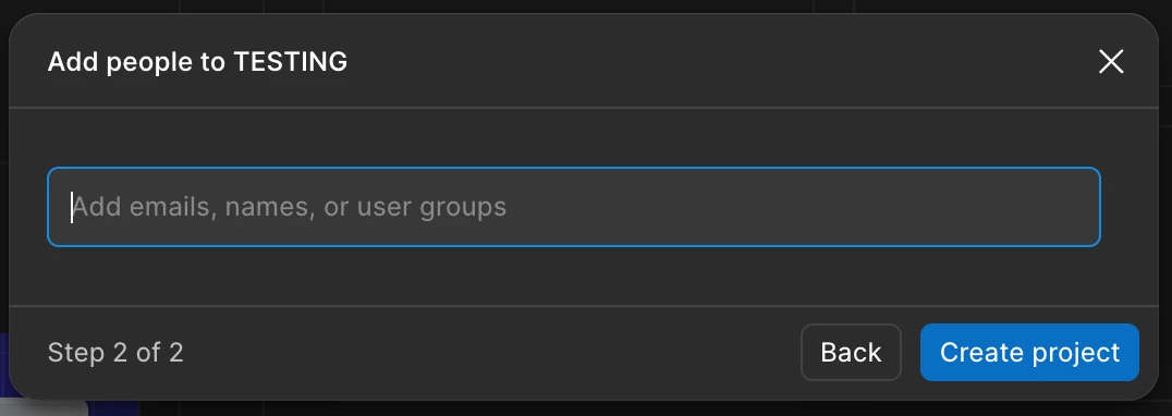 An error is blocking my ability to create a new project. No matter what I enter in step 2 (Add people to (group)), I get an error that says “Cant contain characters /*?….”