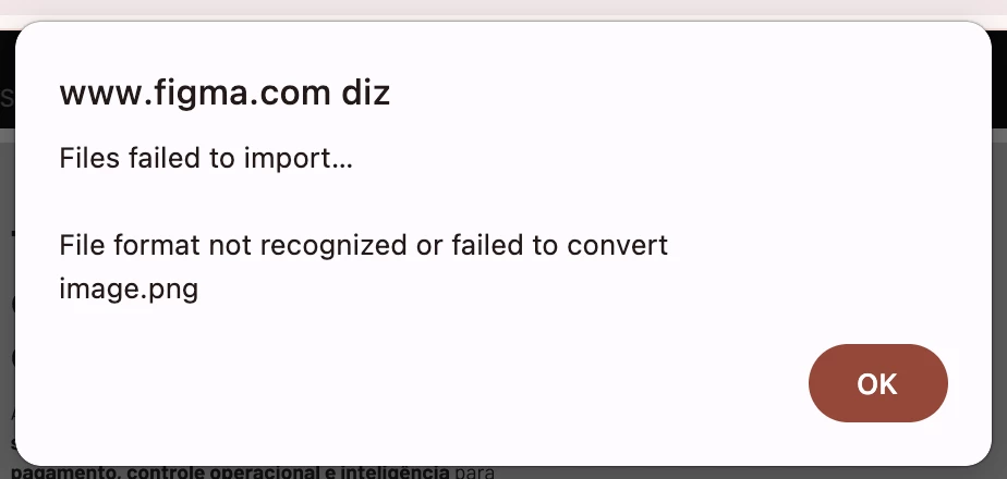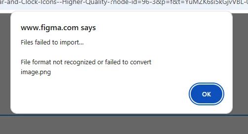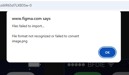 Whenever I paste an image into a frame, Figma tells me that the image format is allegedly not recognized or failed to convert.