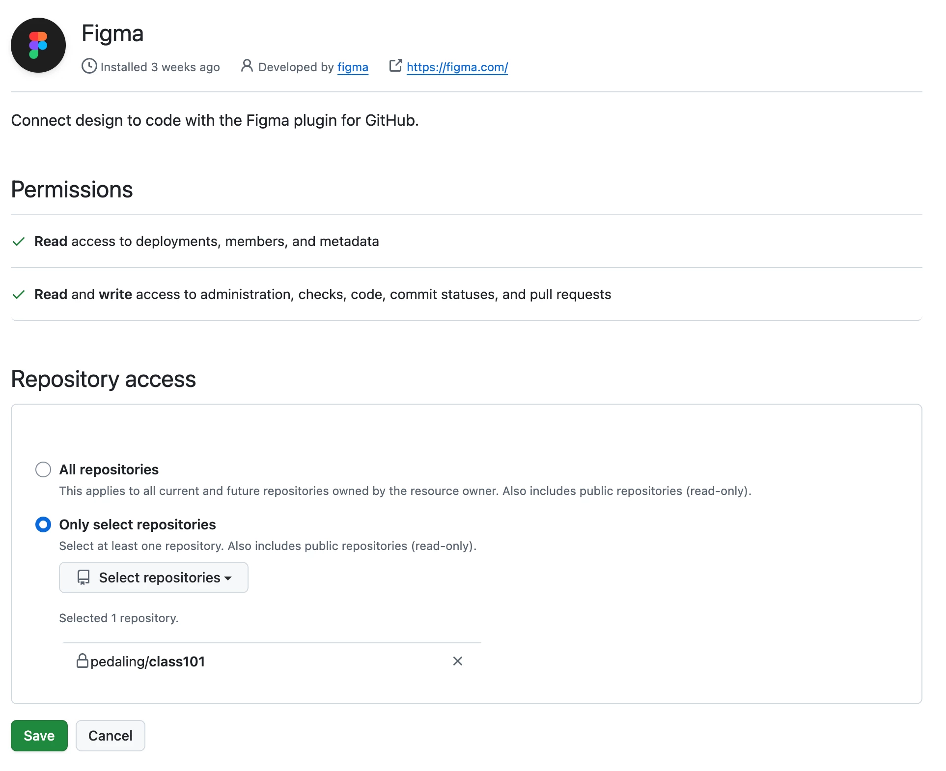 Disconnected/reconnected Code Connect, reinstalled the GitHub App, refreshed the repo list