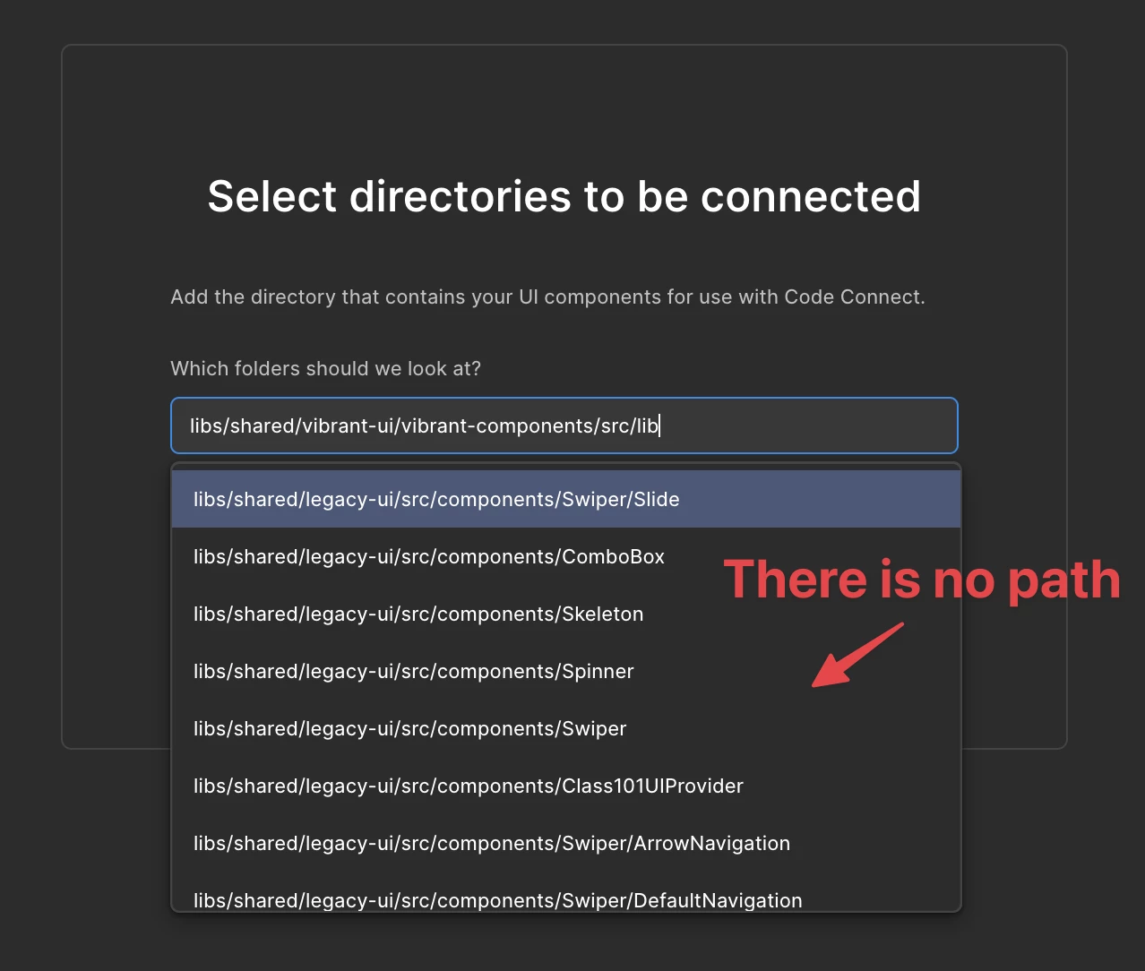 I’m trying to use the newly released Code Connect UI and link it to a GitHub repository in our org. The GitHub App appears to be installed and authorized correctly (see attached screenshots). However, when I reach the “Select directory / path” step, the search field doesn’t return any directories. Typing known folders (e.g., src, packages, app) shows “No results.”
