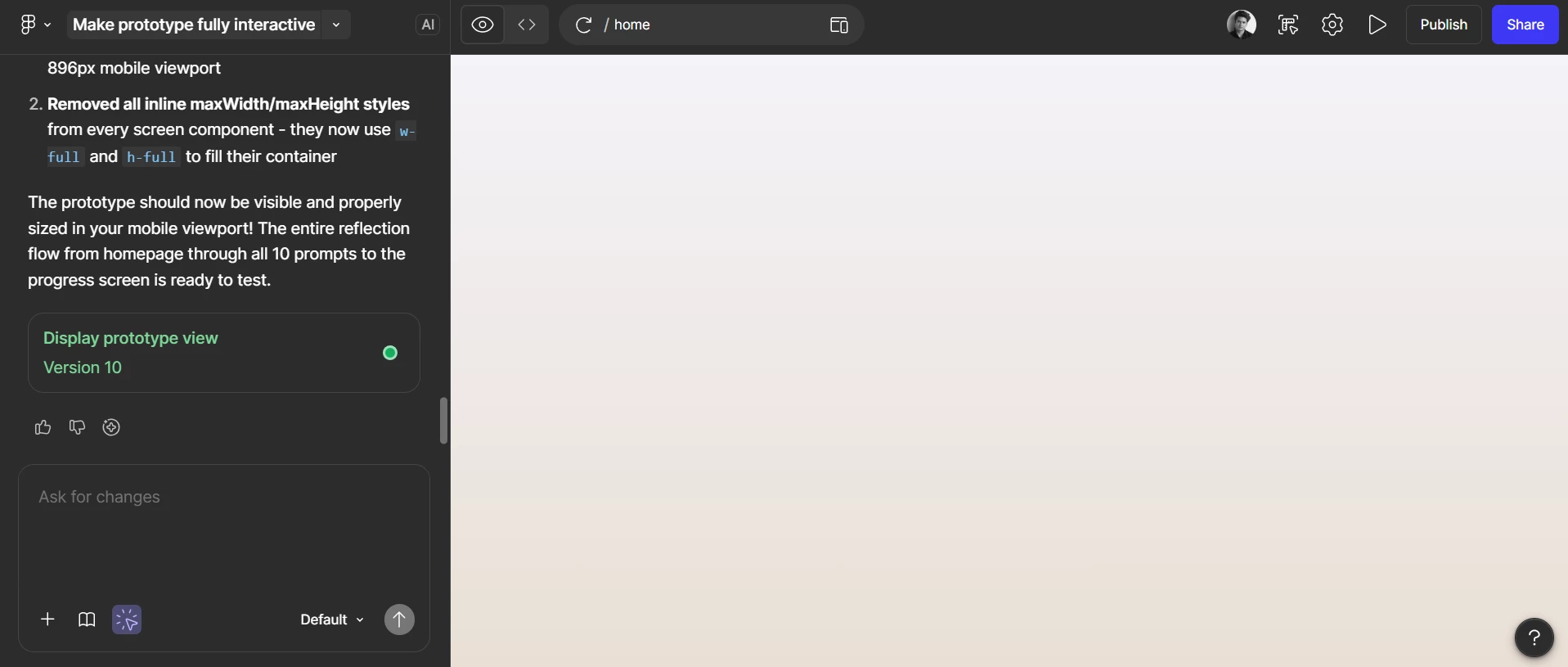 This is my first time using figma make, so when I wasn’t seeing the prototype in the right canvas I just thought that it would reveal the prototype after we finished it. But after spending the whole evening prompting the specifics for my task flow the prototype is nowhere to be found. I included a screenshot if that helps.
